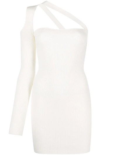 Andrea Adamo Woman One Shoulder Ivory Ribbed Dress In White