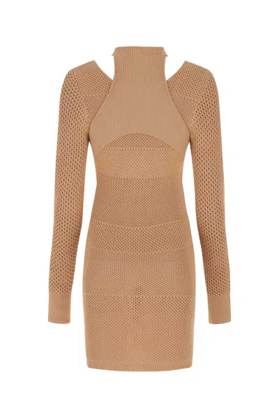 Tight Elasticated Dress With Adjustable Spaghetti Straps In Brown
