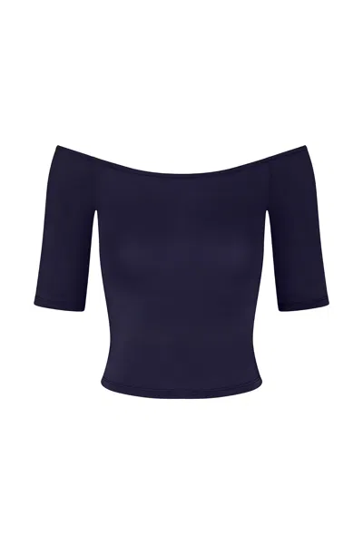 Carolyn Off The Shoulder Top In Luxe Cupro Jersey In Marine