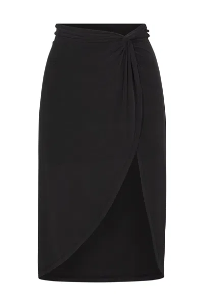 Knot Draped Midi Skirt In Luxe Cupro Jersey In Black