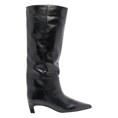 65mm Eyelet-detail Pointed-toe Boots In Black