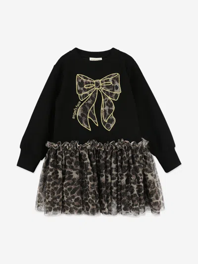 Babies' Angels Face Girls Juniper Leopard Tulle Sweater Dress In Black