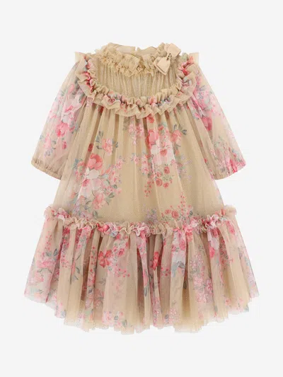 Babies' Angels Face Girls Myrtisa Flower Tulle Dress In Neutral