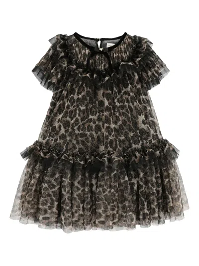 Kids' Leopard-print Ruffled Dress In Brown