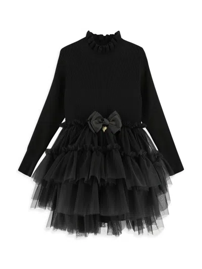 Babies' Angels Face Girls Juniper Leopard Tulle Sweater Dress In Black