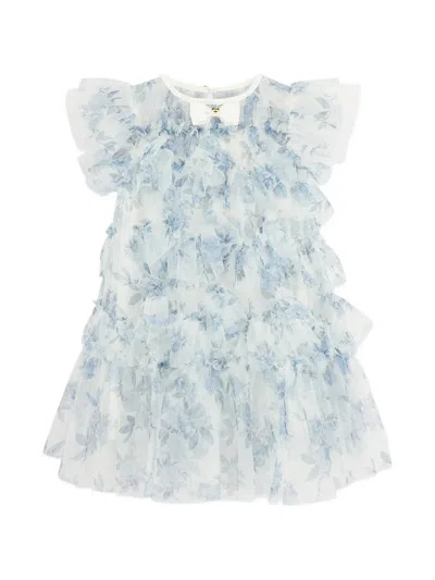 Babies' Angels Face Girls Etta Printed Tiered Tulle Dress In Blue