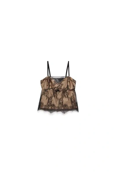 Crop Top Leones Woman Meat With Black Lace In Pink