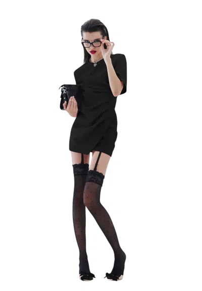 Long Ribbed Dress Goldie Woman Military Green With Glitter In Black