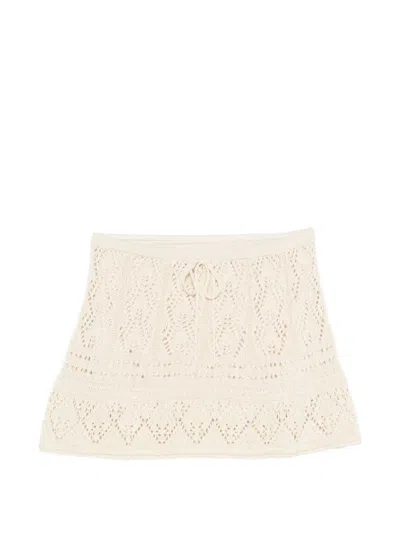 Pointelle-knit Drawstring Mini Skirt In Neutral