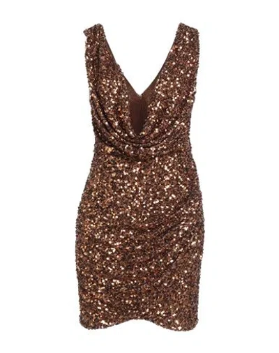 Woman Mini Dress Brown Size 6 Polyester, Elastane