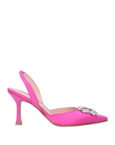 . Woman Pumps Fuchsia Size 10 Textile Fibers In Pink