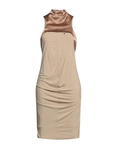 Woman Mini Dress Camel Size L Polyester In Beige