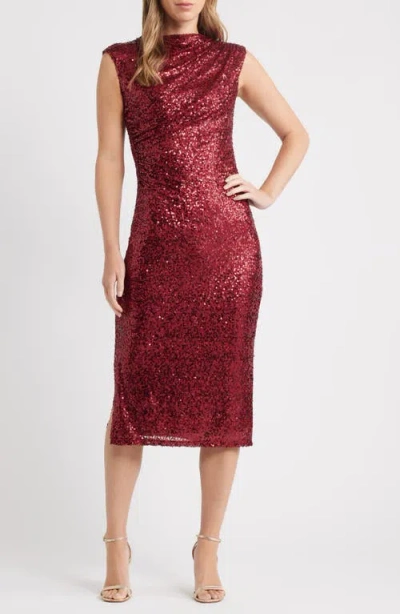 Draped Sleeveless Sequin Sheath Midi Dress In Gold