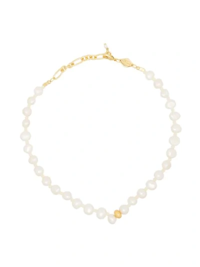 Pearl Beaded Necklace In Gold