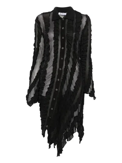 Ruffled Shirt Midi Dress In Black