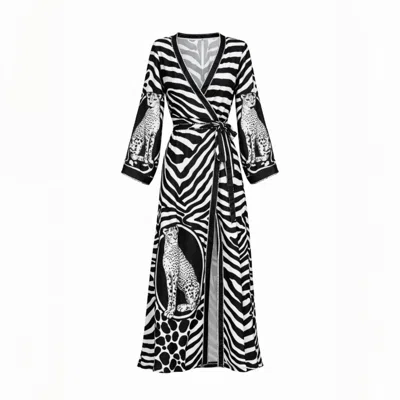 Women's Black / White Tanzania Inspired Maxi Wrap Dress In Multi
