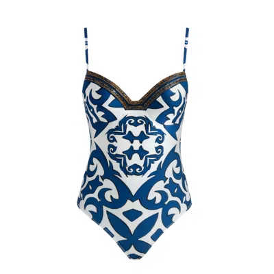 Women's Blue / White Santorini Bralette One Piece Swimsuit
