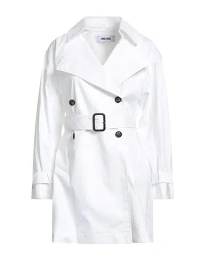 Woman Overcoat & Trench Coat White Size 10 Cotton, Elastane