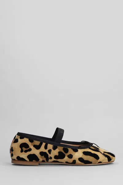 Leather Ballerina With Animal Pattern And Elastic Band In Multicolor