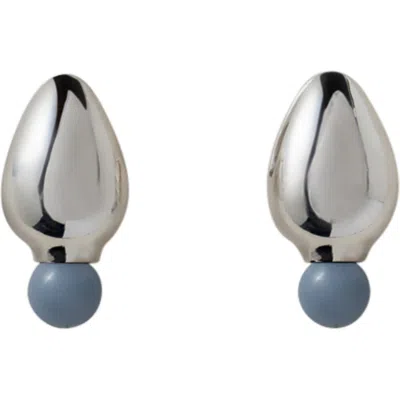 Sterling Silver Large Elongated Ellipse Drop Earrings In Metallic