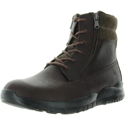 No. 90 Mens Double Zipper Leather Combat & Lace-up Boots In Brown