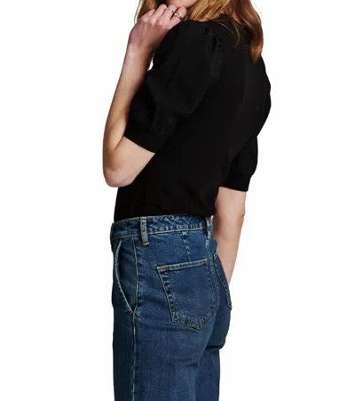 Akiko Ruffle Sleeve Boat Neck Ribbed Top In Stormy Blue In Multi