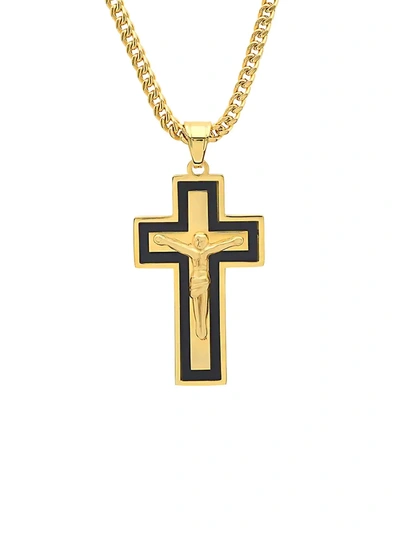 Men's Two-tone Stainless Steel Crucifix Pendant Necklace In Black