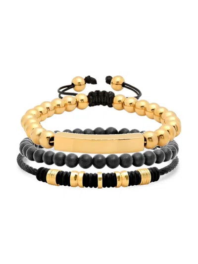 Men's 3-piece Two-tone Stainless Steel & Lava Bead Bracelet Set In Black