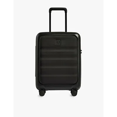 Black Icon Stripe Pocket-front Hard-case Cabin Suitcase 55cm