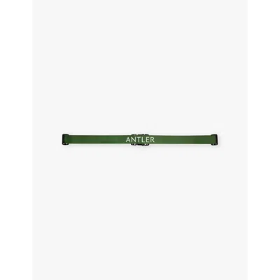 Green Classic Logo-print Webbed-polyester Luggage Strap