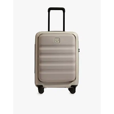 Taupe Icon Stripe Front-pocket Polycarbonate Cabin Suitcase 56cm