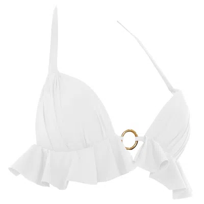 Women's Dalliance Padded Halter Bikini Top With Ruffles In White