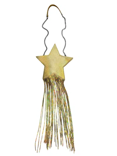Women's Gold / Silver Iridescent Gold Star Leather Fringe Bag In Gold/silver
