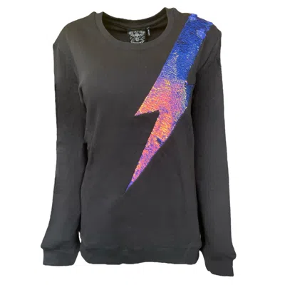 Women's Black Iridescent Oil Slick Reversible Sequin Lightning Sweatshirt