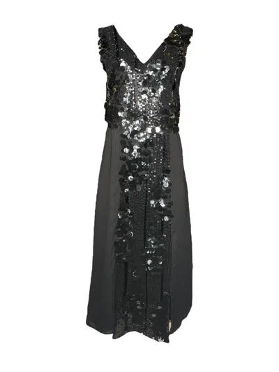 Women's Black Rainbow Smiley Hand-beaded Dress