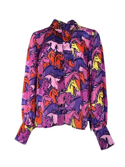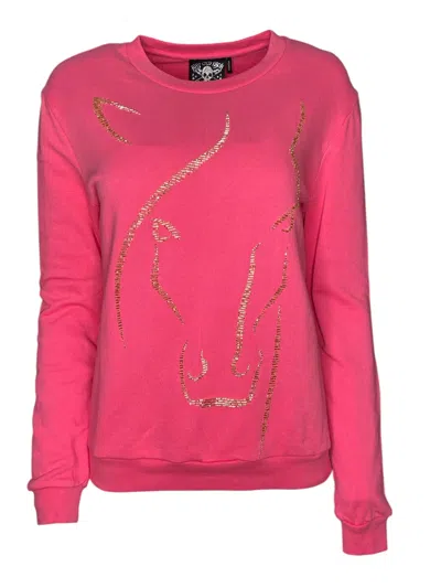 Women's Gold / Pink / Purple Pink Horse Face Beaded Sweatshirt In Gold/pink/purple