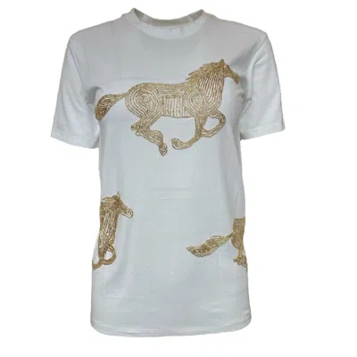 Women's Gold / White Golden Horsey Horsey White T-shirt In Gold/white