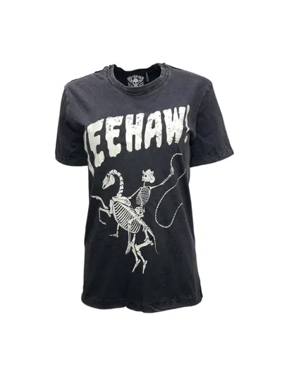 Women's Grey Acid Wash Yeehaw T-shirt In Black