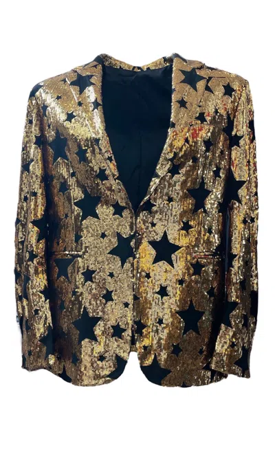 Gold / Black Men's Goldie Sequin Star Blazer Jacket