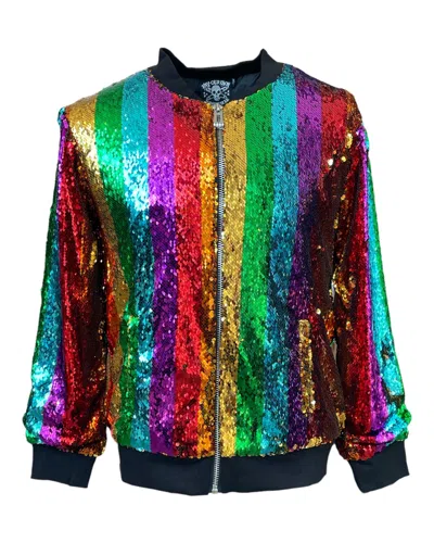 Men's Rainbow Reversible Gold Sequin Bomber Jacket In Black/purple/red/yellow