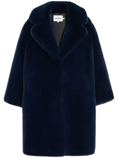 Steffi Wide-lapels Faux-fur Coat In Blue
