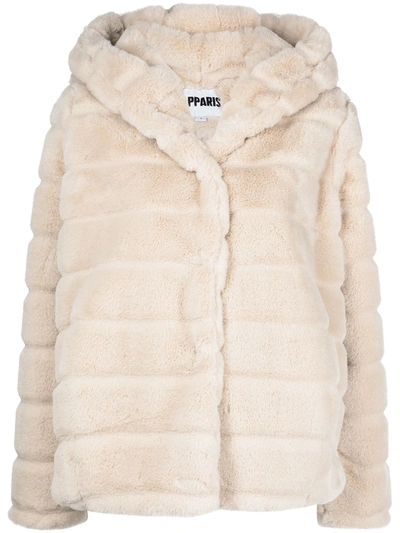 Tilly High-neck Faux-fur Coat In Neutrals