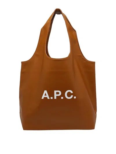 A.p.c. Ninon Brown Tote With Bold Front Lettering