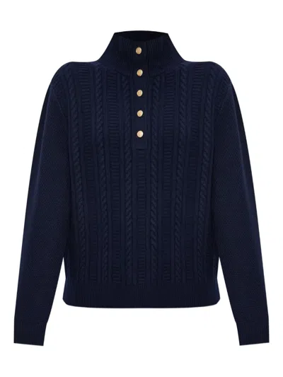 A.p.c. Textured Cable Knit Regular Fit Shirt With High Neck In Blue