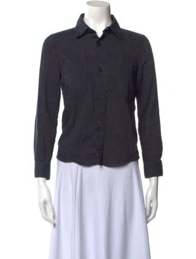 Pre-owned Three-quarter Sleeve Button-up Top In Blue