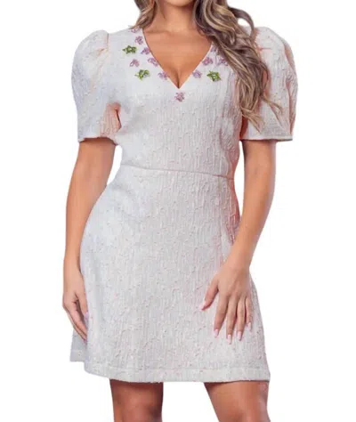 Diana Jewel Neck Mini Jacquard Dress In Rose Gold In Multi