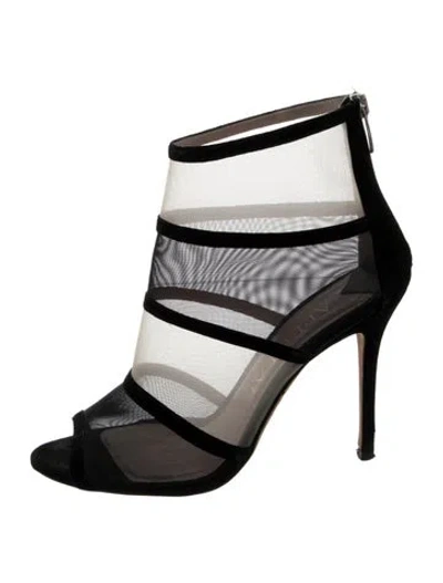 Pre-owned Mesh Lace Pattern Sandals In Black