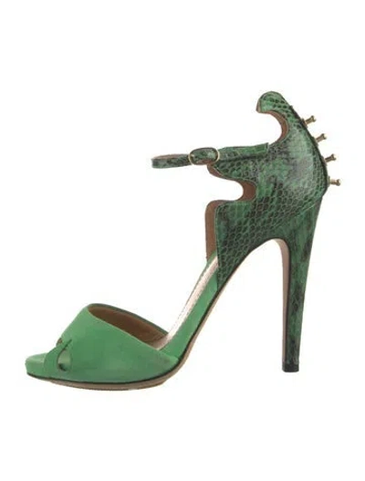 Pre-owned Snakeskin Animal Print Sandals In Green