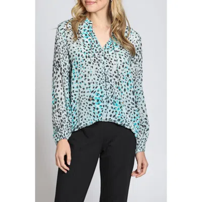 Abstract Print Roll Tab Sleeve Chiffon Button-up Shirt In Teal/grey Multi