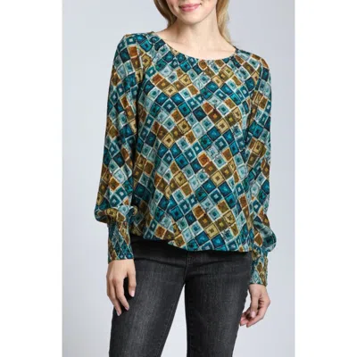 Abstract Print Roll Tab Sleeve Chiffon Button-up Shirt In Blue/green Multi